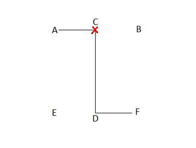 5. Desplazar el pie izquierdo a C, formando una posición de jinete hacia B, dando un golpe horizontal a C con la mano izquierda hacia atrás.